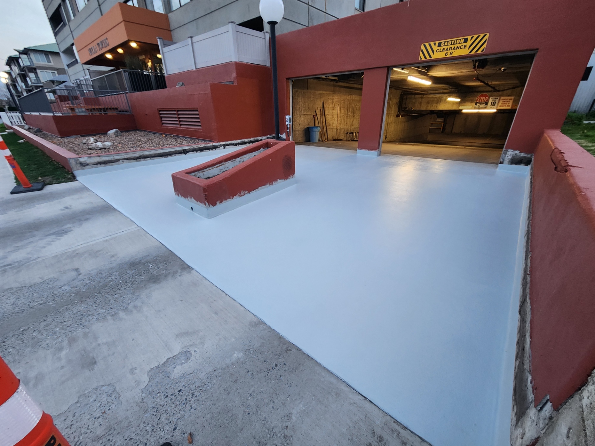Parkade waterproofing membrane and protective non slip coating – 429 St Paul Street