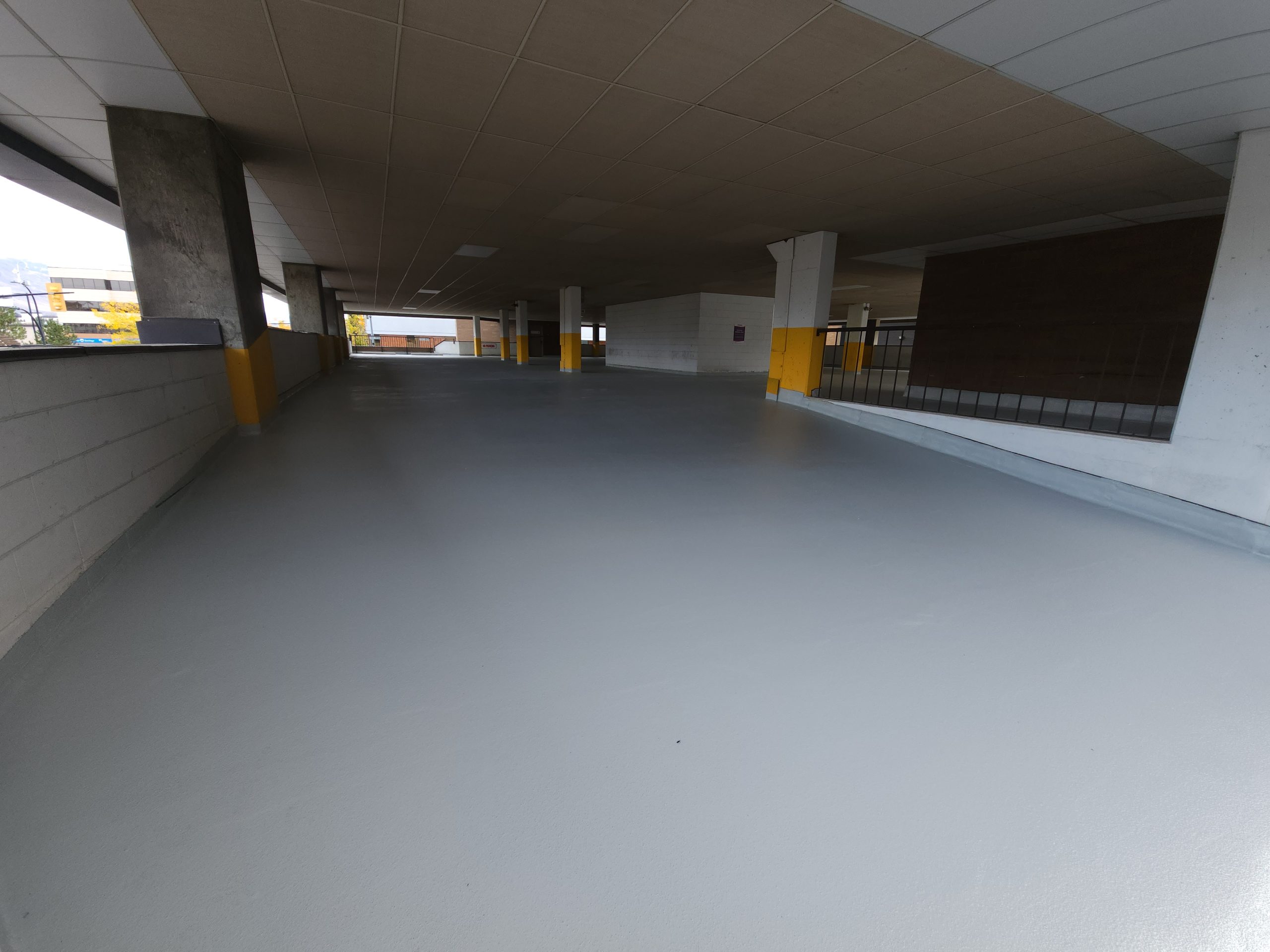 Parkade hybrid system – waterproofing membrane and MMA top coat – 275 Lansdowne St, Kamloops, BC