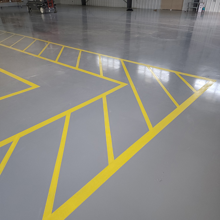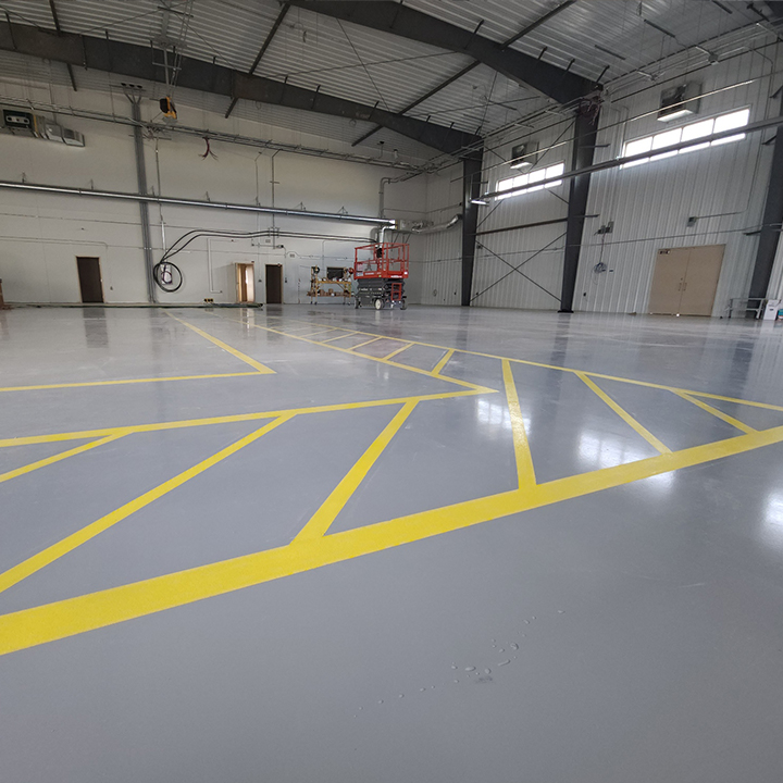 Protective high gloss epoxy floor coating in an airplane hangar