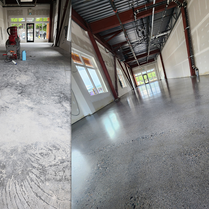 Future home of the Riverbrew Cafe at Sun Rivers – polished concrete