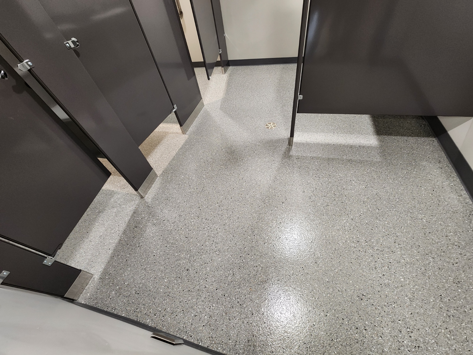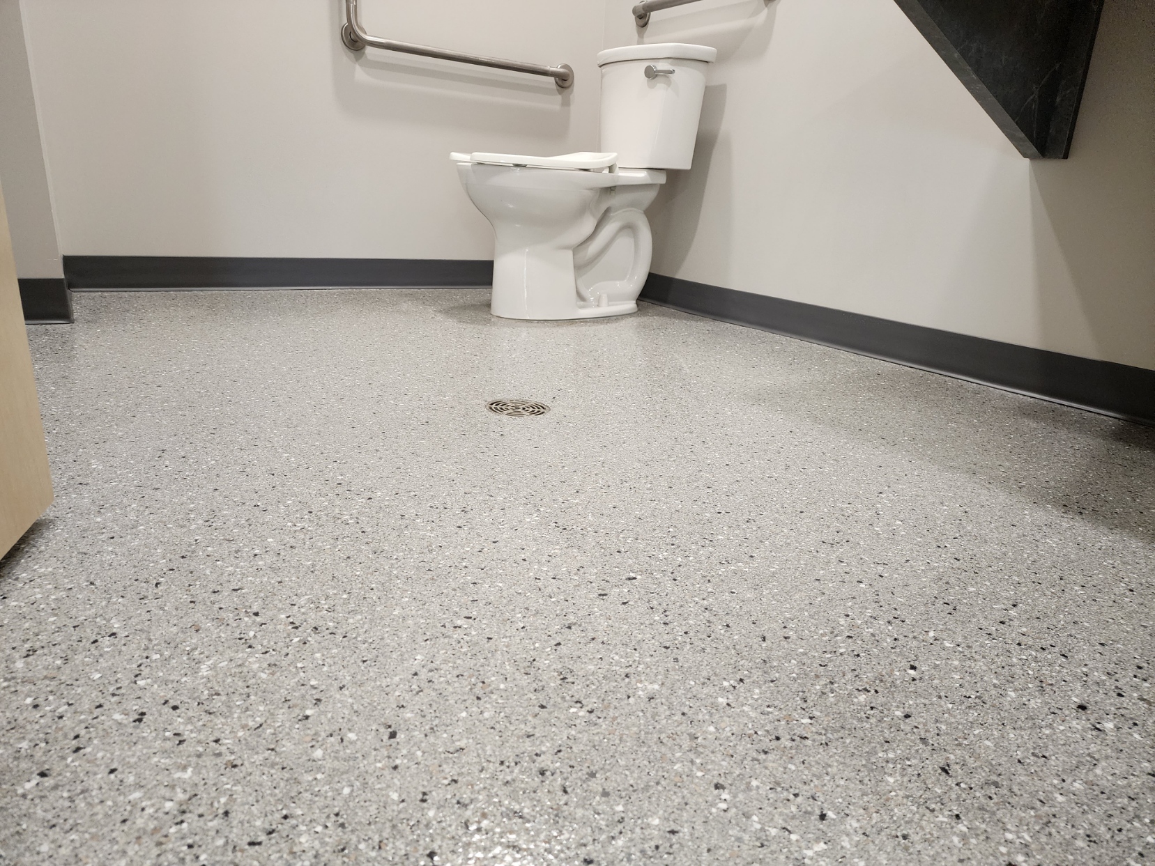 Double broadcast epoxy quartz floor coating with integrated cove in a medical facility